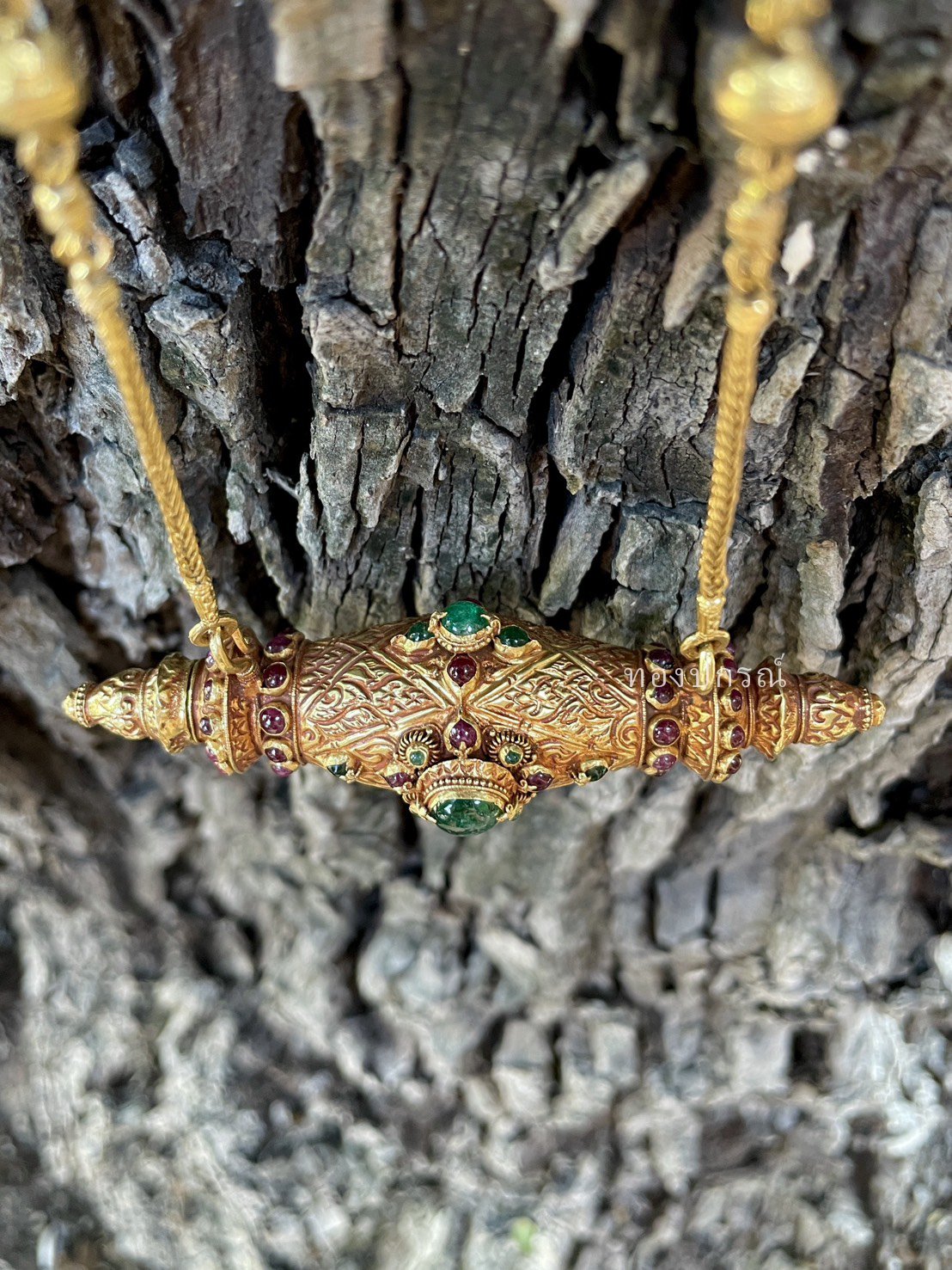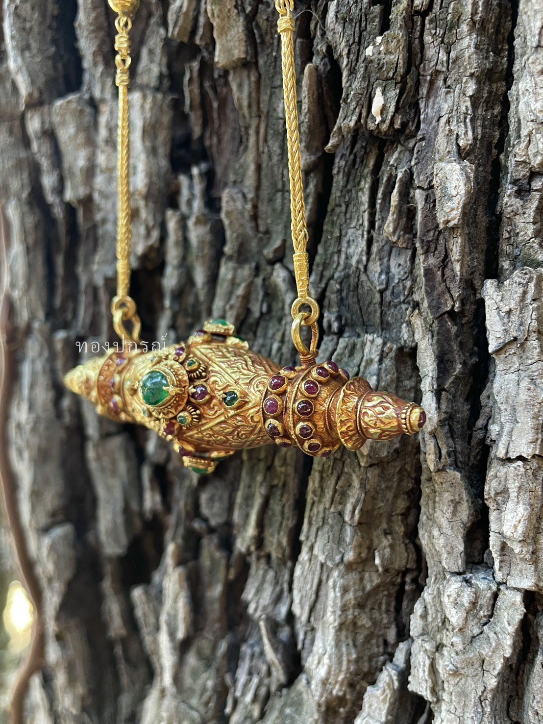 This horizontal gold takrud pendant has a hidden lid that opens to reveal its deeper power: