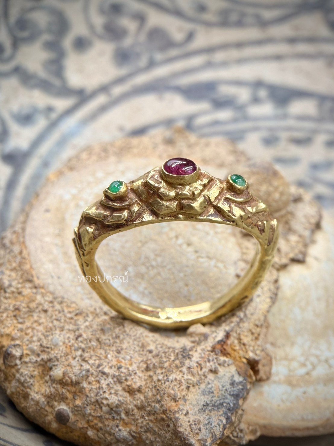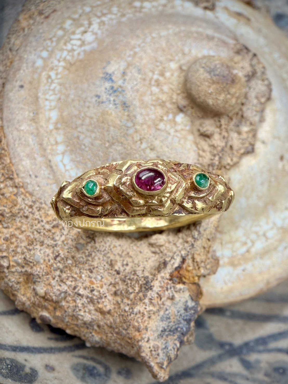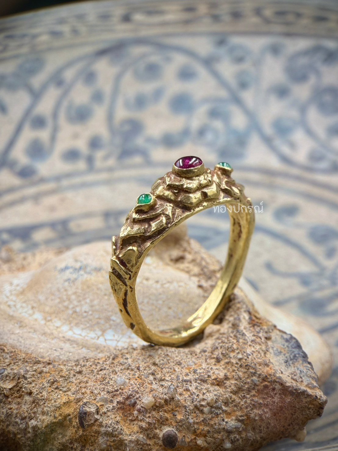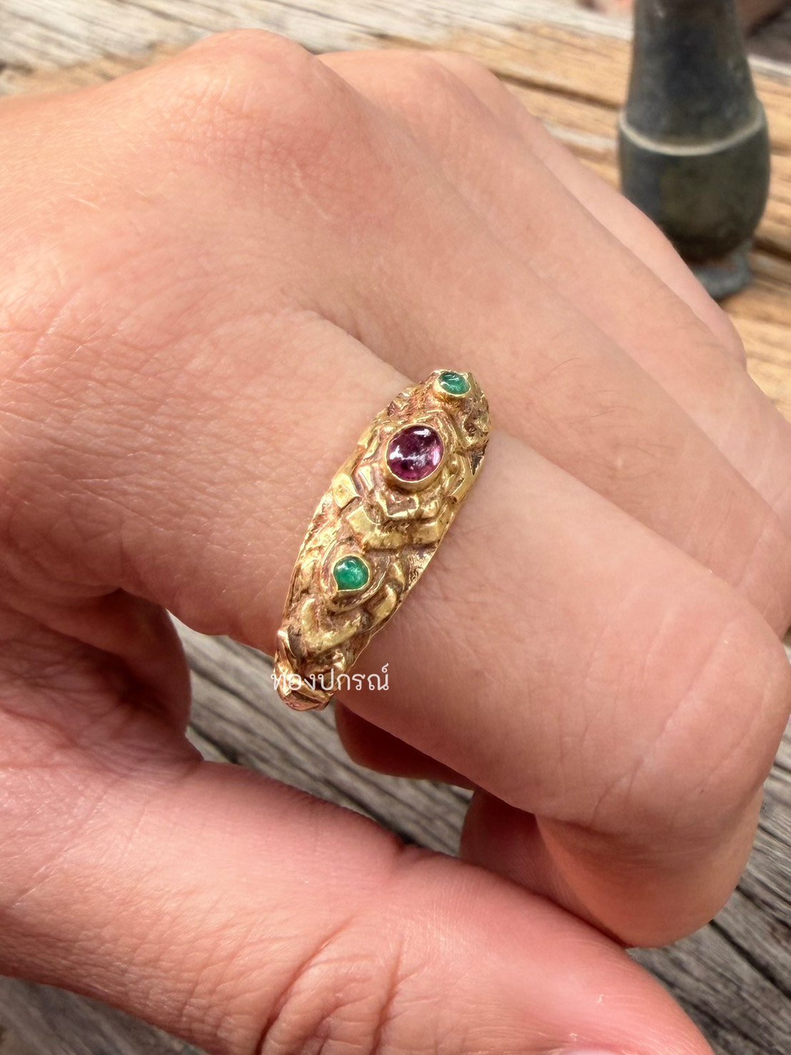 แหวนวงนี้ ลายไม่เร่ง ไม่แน่นเกินไป ทับทิมเม็ดกลางทำหน้าที่เป็นแกนอย่างมั่นคง